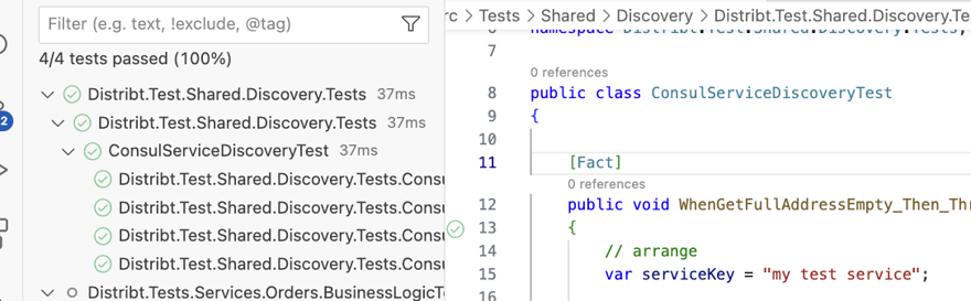 Sigue teniendo cosillas que faltan, como por ejemplo lo que he mencionado de detectar que tipo de proyecto es cuando haces botón secundario (para correr todos los tests), pero trae un test explorer que está bastante bien, y ahora sí nos marca en el propio IDE que el test ha pasado: