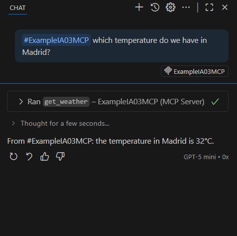 Podemos forzar el uso de nuestra tool invocandola con # en nuestro caso #ExampleIAMCP.